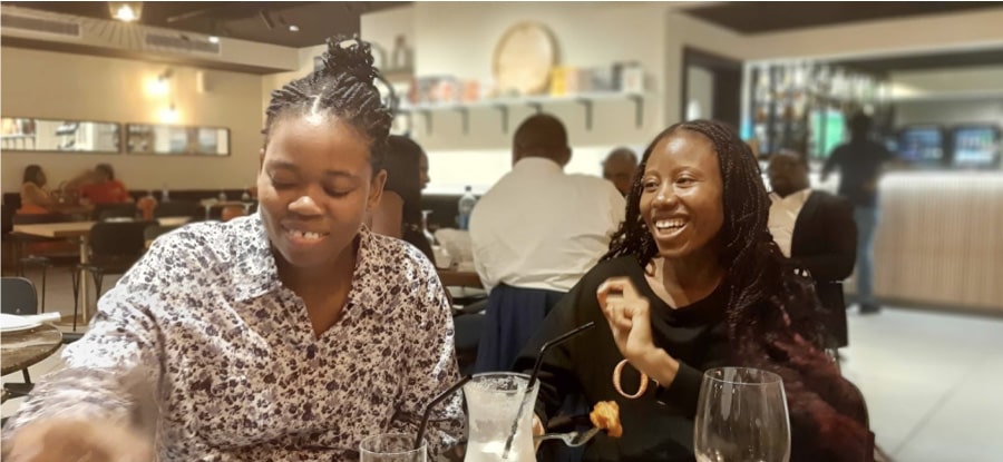 ​Fikayo and Elizabeth, chilling with YUX Co-Founder Yann and the rest of the Nigeria team in Lagos