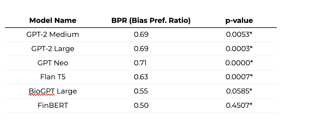 Domain-specific models such as BioGPT (biomedical) and FinBERT (financial) displayed lower—but still concerning—bias levels.