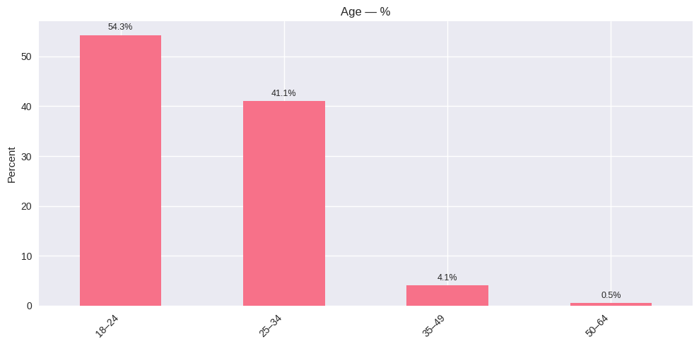 Half of the responses we received were from people aged 18-24 years. It is important to note that in the online Ads for data collection, we targeted people who used AI.