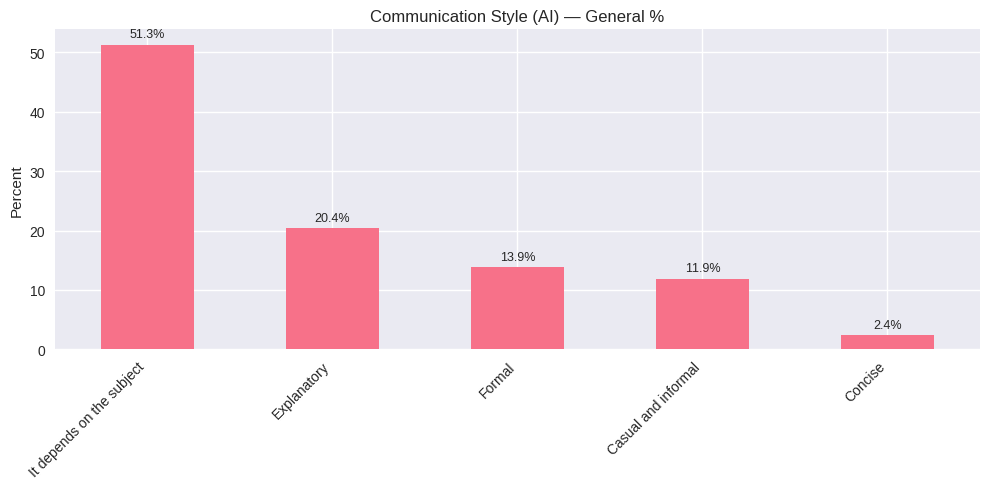 Half of the respondents take an “as the context demands” approach to communicating with AI products. There were no notable differences in the approach to communication with AI in these two countries.