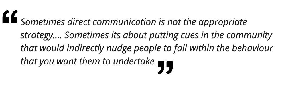 Nudges are subtle, often small, changes or interventions in the way choices or information are presented to people with the aim of influencing their decisions and behaviors in a predictable way. The UNICEF Ghana team highlighted the pivotal role of nudges as invaluable tools, especially during the COVID-19 pandemic, in motivating people to engage in regular handwashing practices. They shared that inorder to encourage people to wash their hands, handwashing facilities were placed everywhere, including in unconventional spots where people would typically not find hand washing facilities.